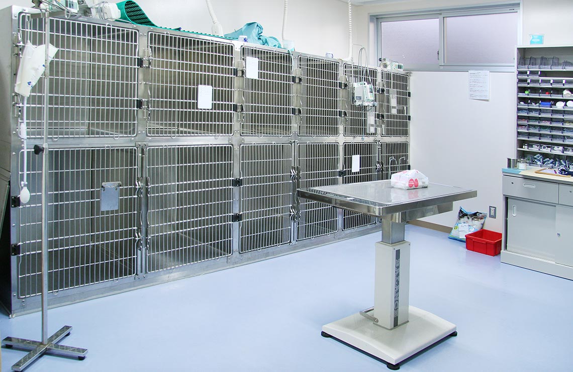 様々な疾患で長期の入院が必要な犬が入院する部屋となります。院内のどこからでも状態を確認できる監視カメラが設置されています。