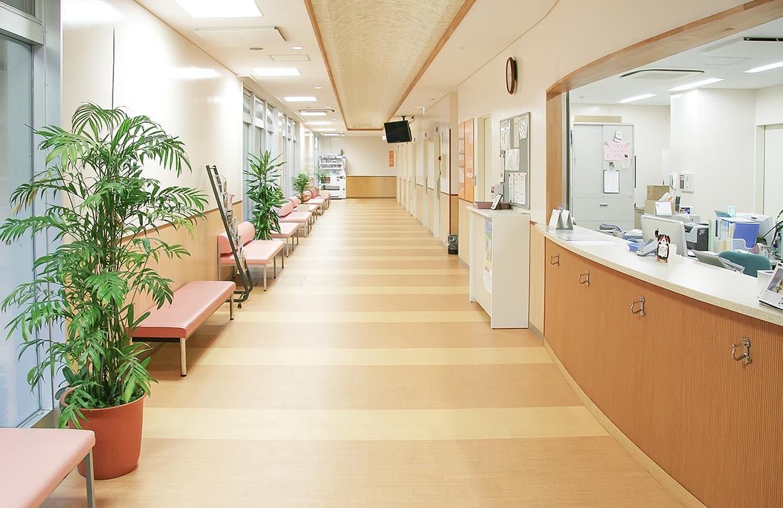明るく開放的なオープンカウンター形式の受付と十分な空間を確保したゆったりとした待合い室(兼廊下)を整備しています。診察を待つ動物たちにリラックスした雰囲気を提供します。